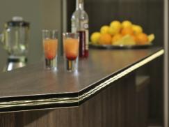 Inneneinrichtung für eine Tanzschule in Isny in Kunststoff Dekor "Mali Wenge" mit silbernen Akzenzkanten.